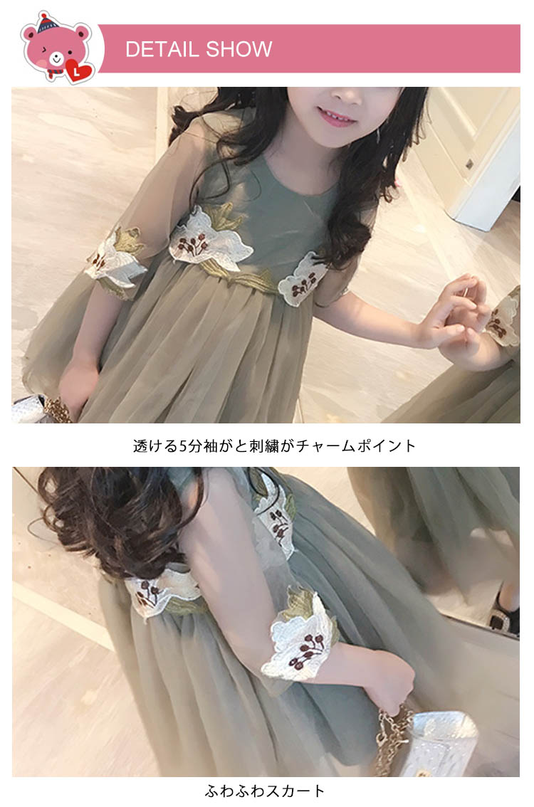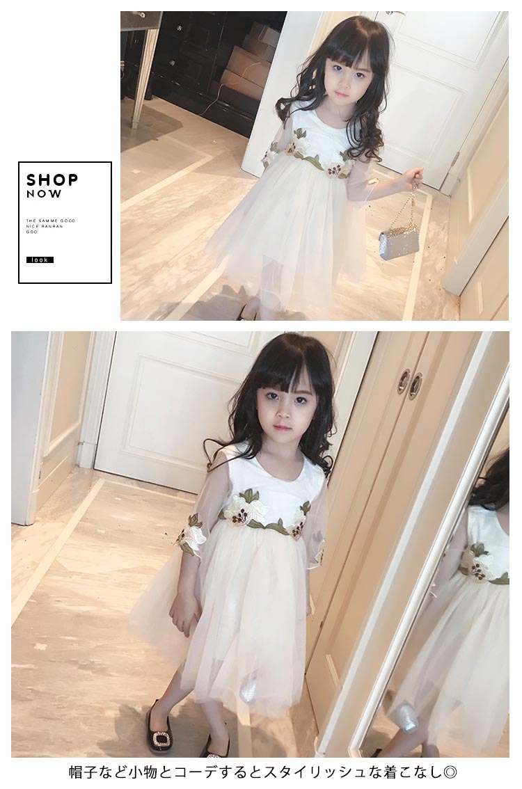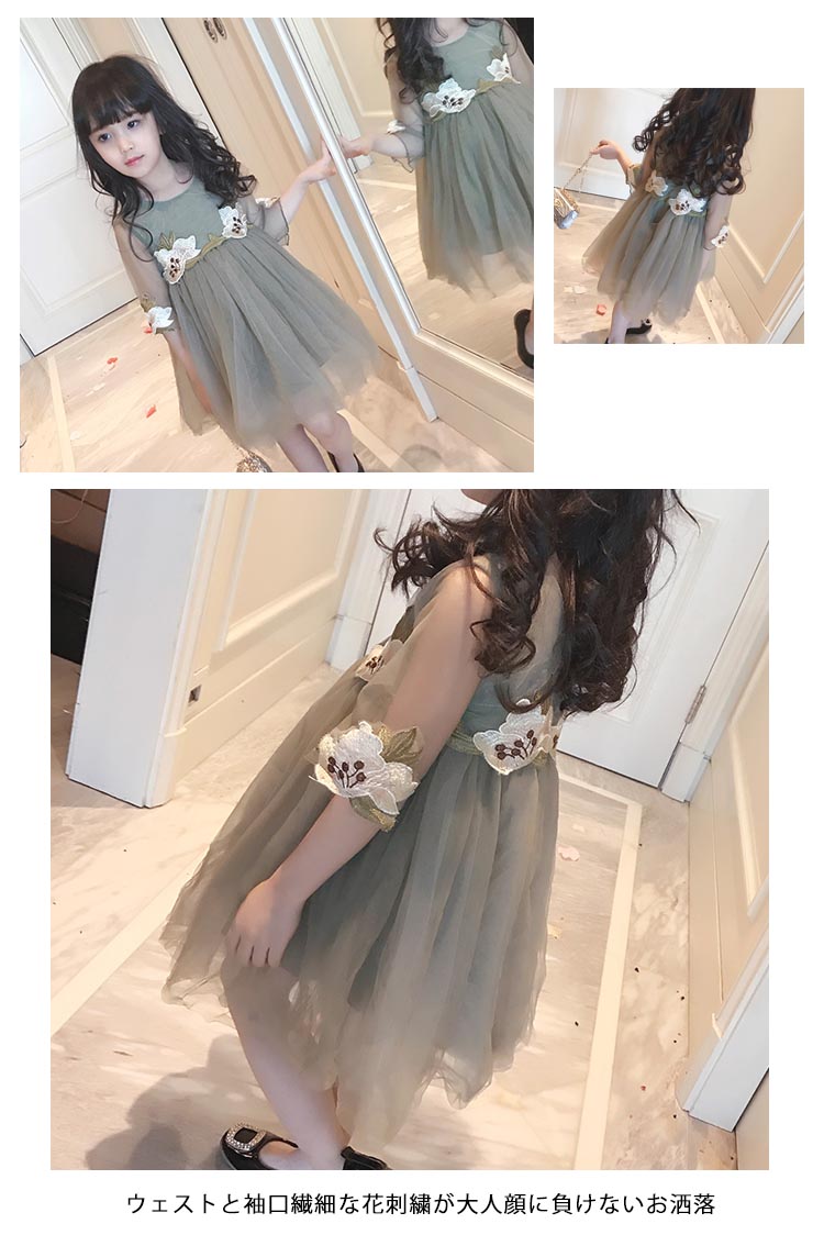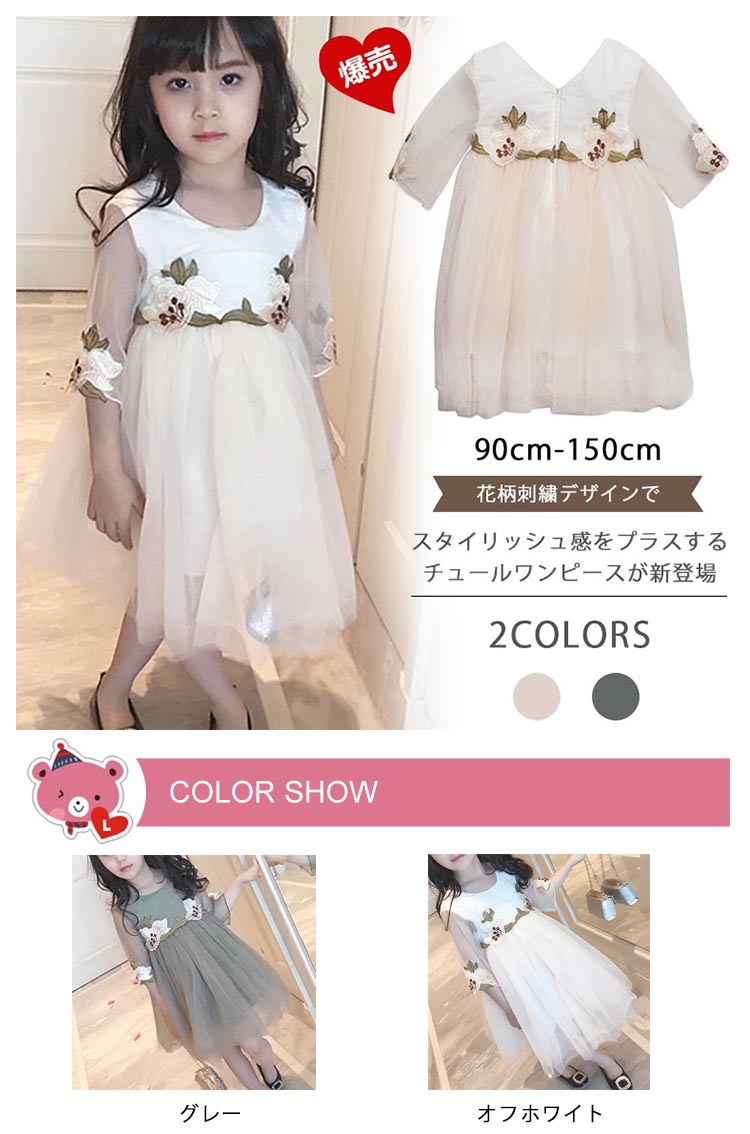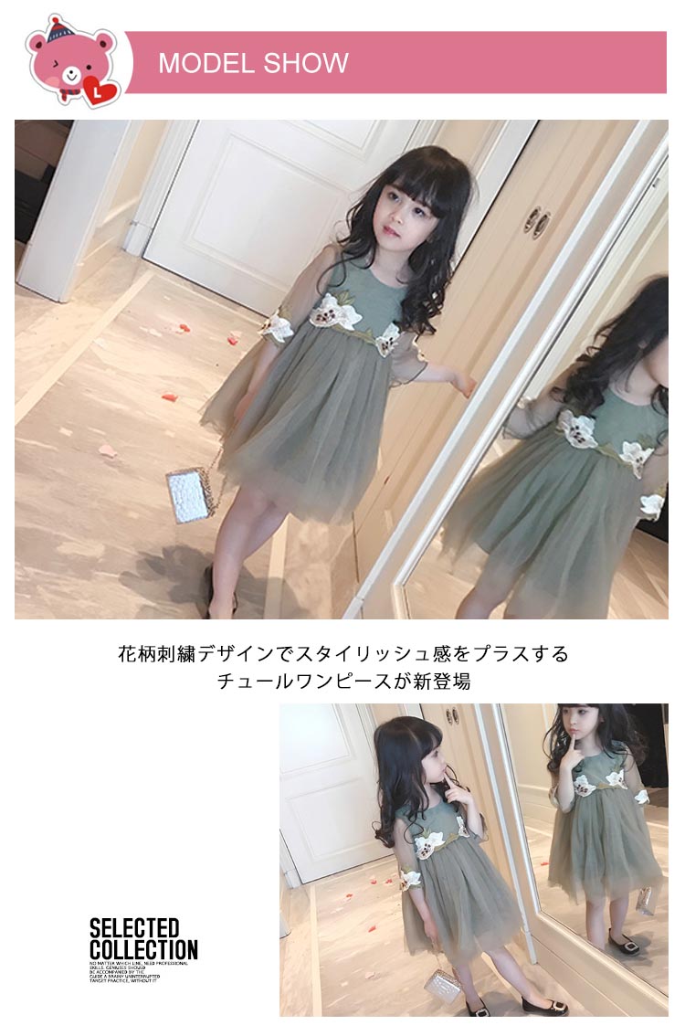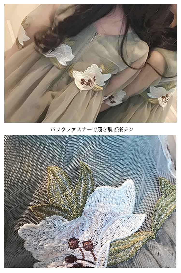 | 花柄刺繍デザインでスタイリッシュ感をプラスするチュールワンピースが新登場ウェストと袖口繊細な花刺繍が大人顔に負けないお洒落ふんわりしたスカートがとっても可愛い、結婚式などフォーマルシーンにピッタリ帽子など小物とコーデするとスタイリッシュな着こなし◎ | |