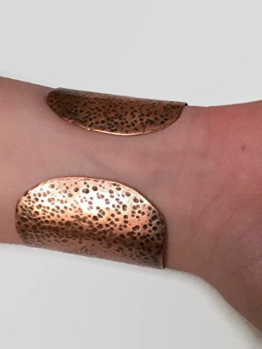 -. Title : Adjustable Maple Leaf Etched and Hammered Wide Copper Cuff Bracelet