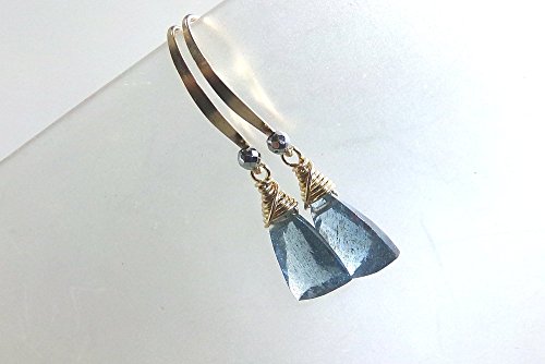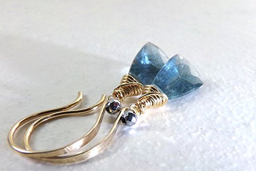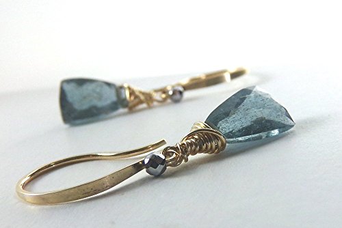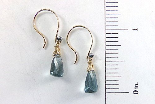 -. Title : Aquamarine Earrings, Teal Blue Aquamarine Earrings, Gold Earrings, Aquamarine Gemstone, Petite Dangle, March Birthstone - Tidewaters