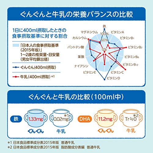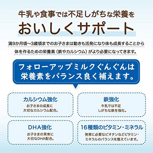 離乳食では不足しがちなカルシウムをはじめ、牛乳では摂りにくい鉄、DHA等の栄養素をバランスよく、おいしく補えるのがぐんぐんです。