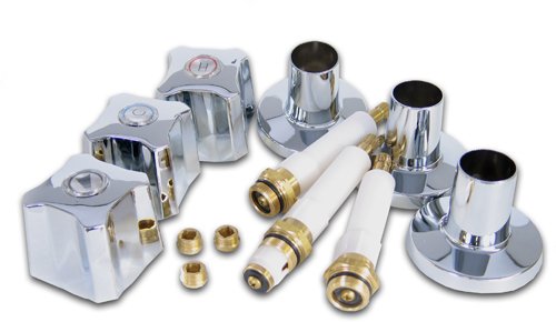 - Includes 2 H/C stems 1 Diverter stem 3 chrome handles and trim, 3 brass bibb seats and all necessary washers and gaskets