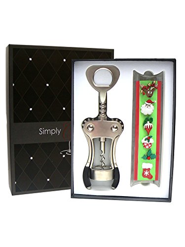 -. Title : Christmas Holiday Wine Gift Set - Magnetic Wine Glass Charms & Markers Plus Quality Winged Corkscrew Wine Opener - Perfect Christmas Hostess Gift