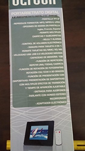 -. Feature : 8" TFT Display / Support playback format: MP3/MPEG-4/JPEG / Supports OSD Language: English, French and Spanish / Clock and Alarm