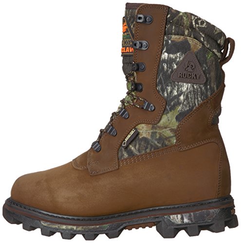 Studio : Rocky Publisher : Rocky Binding : Apparel Product Description Staw warm while you work in these rugged boots from Rocky. Made from a sturdy combination of full-grain leather and Mossy Oak Break-Upcamouflage pattern nylon, these lace-up work boots are ready for the job thanks to top-notch insulation and the BearClaw 3D outsole with RockyROCKY 3D welt construction. With quality features both inside and outsoide of these Rocky work boots, you'll be able to trek through frigid areas with confidence and comfort. 0
