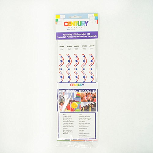-. Feature : 100 USA inspired wristbands per package. / Each wrist band is approximately 10″ x 1″. / Made of Tyvek, which is tear, stretch, and water proof. / Maximum strength adhesive prevents reusability. / Each wrist band is sequentially numbered and stamped with our company information, allowing you to spot counterfeit wristbands.