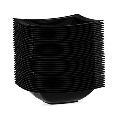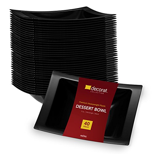 DECORAT Premium Quality Curved – Black – Rectangle Hard Plastic 5-oz Dessert Bowl 40 Ct. Disposable /Reusable