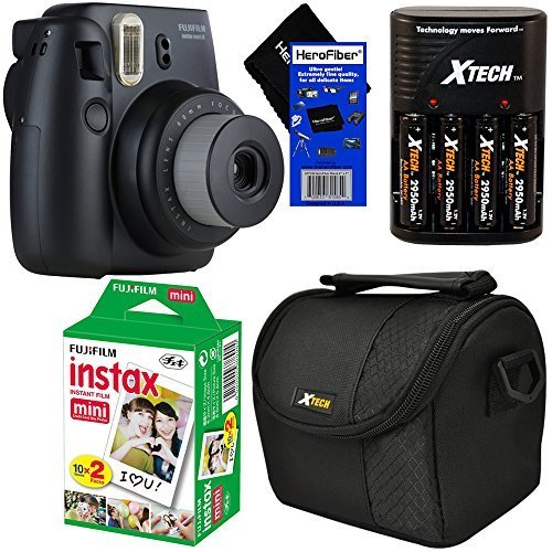 Fujifilm Instax Mini 8 Instant Film Camera (Black) + Fujifilm Instax Mini Instant Film (20 sheets) + 4 AA High Capacity Rechargeable Batteries with Battery Charger + Well Padded Camera Case + HeroFiber Ultra Gentle Cleaning Cloth