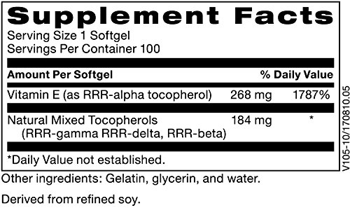 Natural vitamin E high in gamma-tocopherol. Vitamin E is important for tissue repair, circulation and blood clotting, healthy nerves and muscles, and proper functioning of all major organ systems.* It can also inhibit oxidation of lipids and formation of free-radicals.* Pure-E is a natural, balanced, potent vitamin E supplement containing d-alpha tocopherol and mixed tocopherols derived from highly refined soy oil that has had soy protein (the allergenic component) removed. Each softgel provides approximately 195 mg of gamma-tocopherol, 78 mg delta-tocopherol, and 6 mg of betatocopherol. This supplement has been specifically formulated to be highly bioavailable and hypoallergenic.* A legacy built on purity: Since 1969, the Klaire Labs name has been trusted to deliver clean formulations suitable for even the most sensitive individuals. Klaire Labs was among the first to provide pharmaceutical grade active ingredients formulated to minimize allergens, artificial additives, fillers, and flow agents.Feature