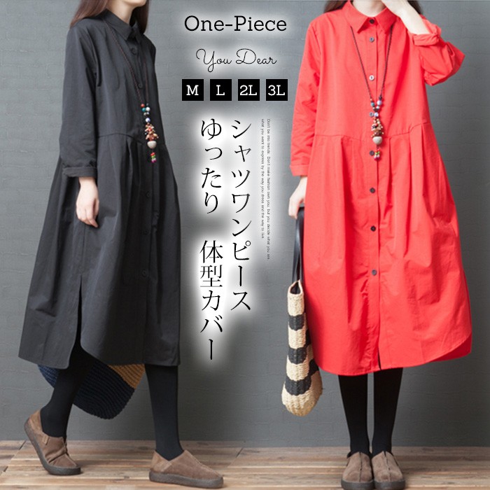 【キーワード】検索シャツワンピース ワンピース ロング レディース ロングシャツワンピース ロングワンピース コットン綿 体型カバー 長袖 ワンピース チュニック ロングワンピ 体型カバー 森ガール ナチュラル服 秋 冬 秋ワンピース ゆったり 大きいサイズ 着痩せ 30代 40代 50代 60代 お洒落 おしゃれ オシャレ ゆるっと 旅行 ママワンピース 母親 ママ ワンピース 無地 M L 2L 3L 黒 赤【ご注意】:初めのうち色落ちする事がありますので他のものとは別にお洗いください。・塩素系漂白剤は使用しないでください。★素材:ポリエステル★カラー:黒 赤※お客様ご使用のPC環境により商品画像のカラーが多少異なる場合があります。仕入時期により多少デザインなど異なる場合があります。ご了承ください。★サイズ(CM):M: バスト102 肩幅39 袖丈57 着丈107L: バスト106 肩幅40 袖丈58 着丈108XL: バスト110 肩幅41 袖丈59 着丈109XXL:バスト114 肩幅42 袖丈60 着丈110※サイズは人の手によって測っているため、1-3cmの誤差がある場合がございます。予めご了承下さいませ。
