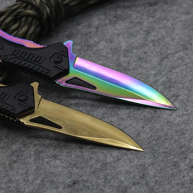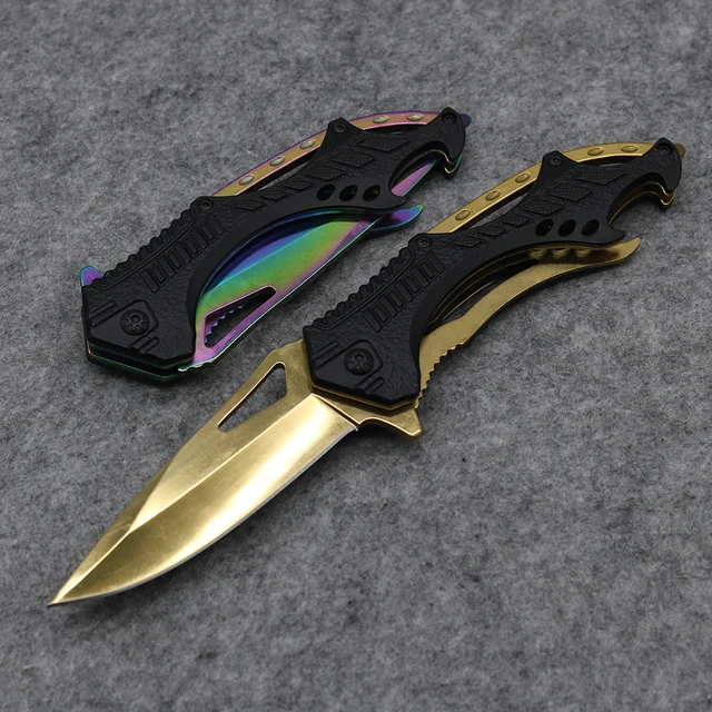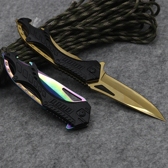 | [해외] 새로운! 전술 접는 나이프 3CR13 스틸 고성능 나이프 구조 도구 2 황금 및 멀티 블레이드 사냥 칼 |