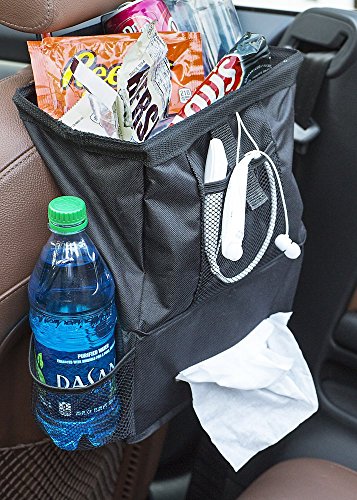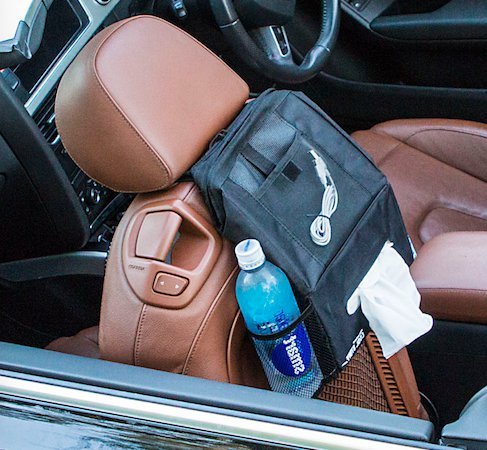 This All in One Deluxe Car Trash Bag and Organizer Has a Lifetime Warranty. 100% Leak Resistant. Front Mesh Pocket, Drink Holder, and Tissue Holder Make All the Small Items You Need Convenient and Organized. Large Capacity Holds a Considerable Amount of Trash. Stylish Appearance Enhances the Interior of Your Car. Adjusts to Perfectly Fit Over Headrest and Takes Only Seconds to Install and Remove. Can Be Used for Back Seat or Turned Around for Use When Driving Alone if Preferred. Includes a Free Report on 62 Ways to Save Money at the Gas Pump!