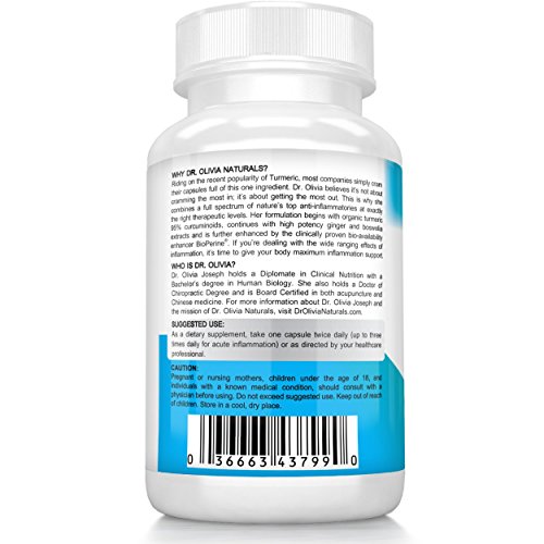 SYNERGISTIC INFLAMMATION SUPPORT - Dr. Olivia believes it's not about cramming the most in, it's about getting the most out. This is why her Organic Turmeric Inflammation Complex contains a full spectrum of anti-inflammatory nutrients.