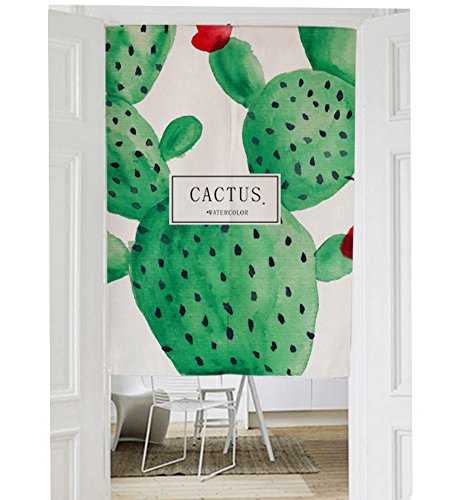 Cotton Linen Doorway Curtain Noren Cartoon Cactus For Home Decoration (33.5"x59.1")