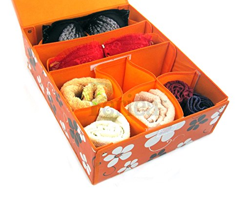 -. Title : Periea - 12 Compartment Drawer Organizer - Hannah (Orange With Flowers)