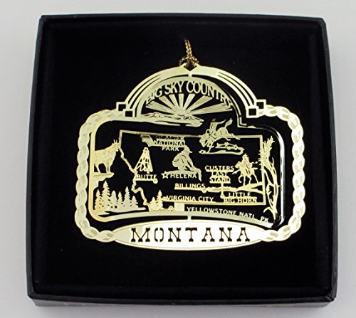 Montana State Brass Ornament Black Leatherette Gift Box