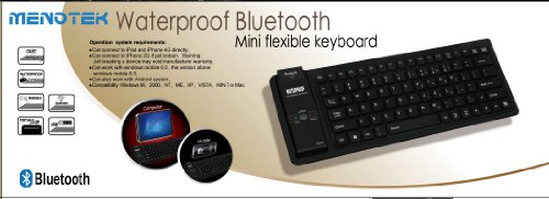 Menotek Flexible Bluetooth Waterproof Mini Keyboard For iPad Air, iPad 4, Microsoft Surface and Apple iPhone 5 and and iPad Mini iPad and iPad 2 and iPad 3 and iPad 4 and Galaxy Tab and Tab 10.1 and Galaxy S2 and iPhone 4/4G, Windows, Mac, Linux
