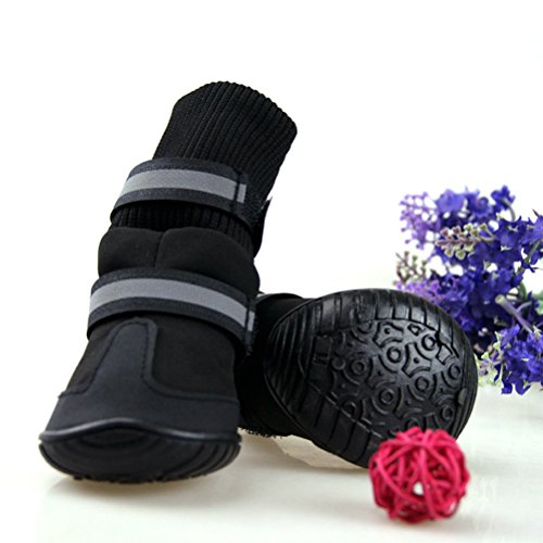 -. Feature : Pack of 4 large pet dog snow boots anti slip rain boots, protective dog boots shoes with anti slip rubber sole for winter. / Tough anti-slip soft soles design, ideal for all-weather use. Adopts adjustable adhesive snap closure design to secure fit. / Designed as dog hiking boots, dog running shoes or general dog sports shoes for simply walking outside. / Can well protect your dog's paws from jagged stones, sand, snow or any abrasive surface, and keep their paws dry, clean, warm and comfortable. / Size XL: 98 x 77 x 150 mm (L x W x H). Suitable for large dog.