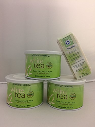 (Clean Easy)/Personal Care/Shaving Hair Removal/DIRECT FROM USA/Clean Easy White Tea Hair Removal Wax For Sensitive Skin 3 Pack Free 100 Piece Muslin Strips