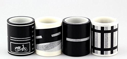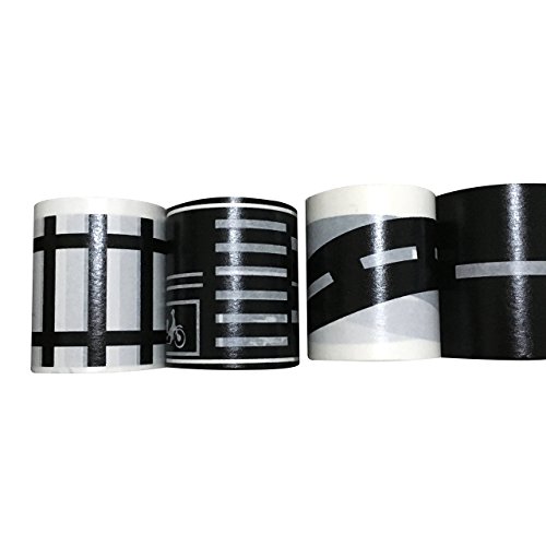 4 Rolls Washi Masking Tape, 196'' x 1.99'' Wide Railway Road Game Solid Set, Premium Japanese Washi Tapes, Black, White, Diy Scrapbooking Craft & Hobby Supplies