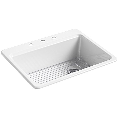 KOHLER K-8668-3A1-0 Riverby 27" x 22" x 9-5/8" Top-Mount Single-Bowl Kitchen Sink with Bottom Basin Rack & 3 Faucet Holes, White