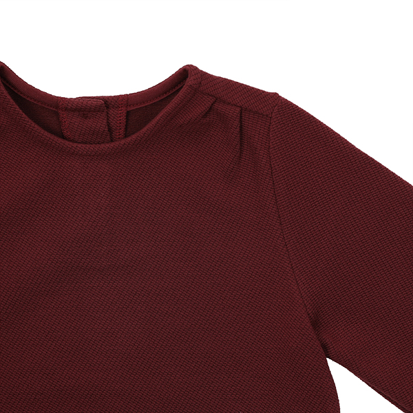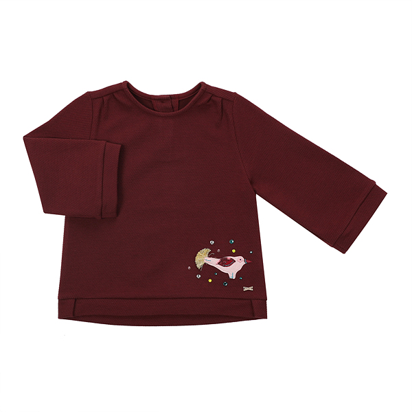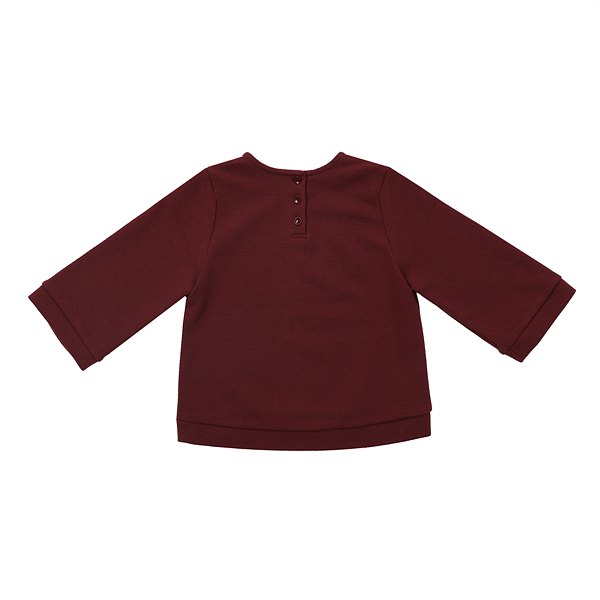 상세설명-가을의 대표적인 컬러인 와인컬러에 큐빅장식을 넣어 귀여운 느낌으로 입을 수있는 8부소매기장의 티셔츠입니다.