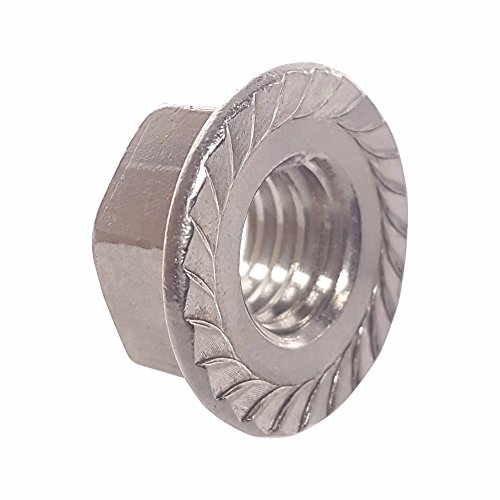 10-24 Serrated Flange Hex Lock Nuts, Stainless Steel 304, Bright Finish, Quantity 100
