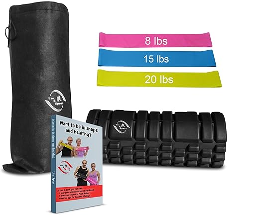 [Product Information]- SPECIAL SET FOR TOTAL BODY WORKOUT AND SELF MASSAGE; It provides you total body workout, to stay fit and prevents injuries with massaging your body after workout! Suitable for various exercises at home or at gym; set includes 1 Foam Roller (black or pink) 13 x 5.5 Inch, 3 Latex Resistance Loop Bands (8, 15, 20 lbs), 1 Carry Bag, eBook