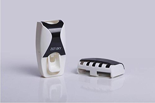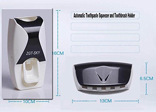 BAIESHIJI ® Automatic Dustproof Toothpaste Dispenser with Toothbrush Holder Organizer Set Mini Easy Install Dust-proof Toothpaste Dispenser Toothpaste Squeezer Kit (Black) (black) B01G8D0PK2