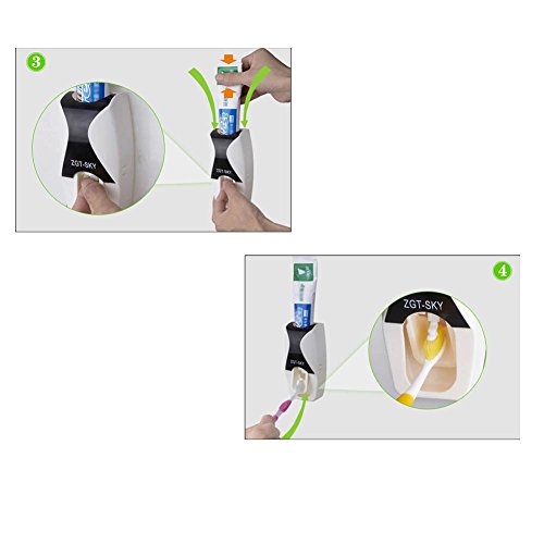 MULTIFUNCTIONS- This creative automatic toothpaste dispenser is made up of toothbrush holder, toothpaste squeezer pump. It's great for kids bathroom to keep toothbrushes off counter and reduce toothpaste mess.