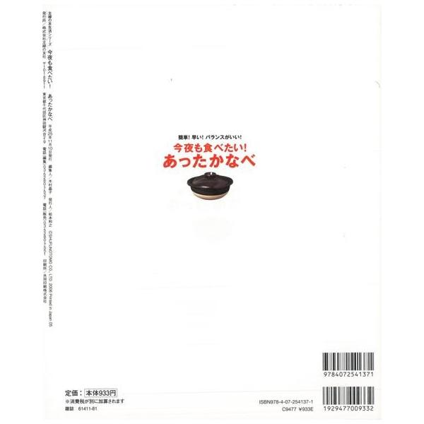 【商品基本情報】 商品名称:今夜も食べたい!あったかなべ 著者/出版社:料理ムック/料理ムック 初版発行日:2013/11/10 サイズ:AB判 ページ数:98 ISBN/JAN:9784072541371/4528189462892