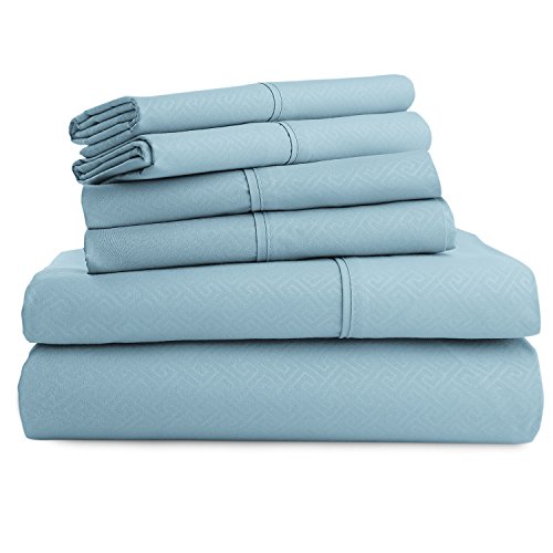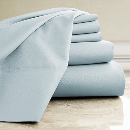 Luxor Linens Hotel Quality Metropolis 100% Microfiber Greek Key 6-Piece Sheet Set - Luxurious, Easy Care, Wrinkle Resistant - 6 Colors & 5 Sizes Available - Queen - Sky