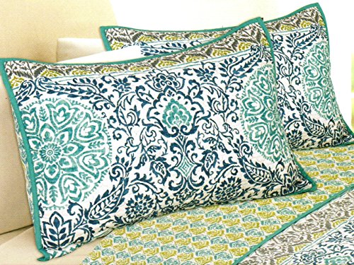 Medallion Damask Blue Floral Quilted Sham Set