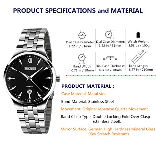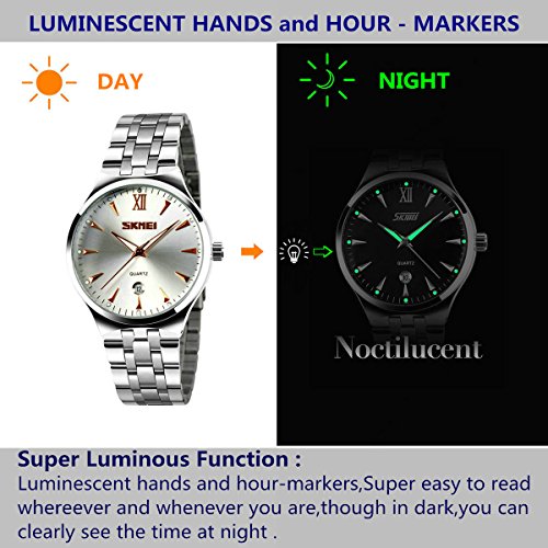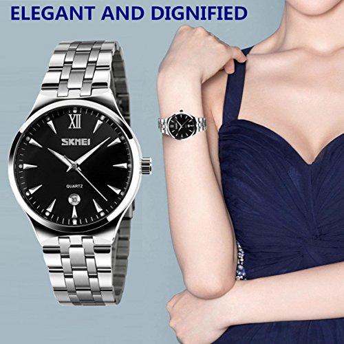 WUTONYU Women's Luminous Pointer and Scale Quartz Waterproof Calendar Date Window Wrist Watch (Black)
