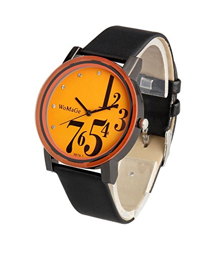 ShoppeWatch Mens Big Face Wrist Watch Orange Dial Black Band Unisex Reloj Para Hombre SW9678BKOR