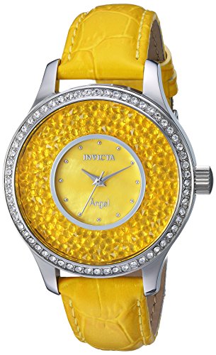 Invicta Women's 'Angel' Quartz Stainless Steel and Leather Casual Watch, Color:Yellow (Model: 24587)