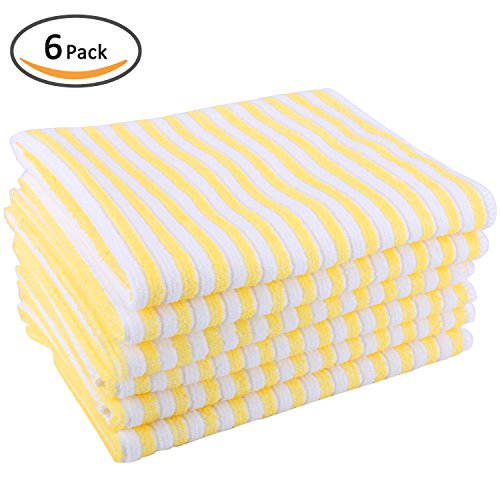 -. Title : Kleanner Microfiber Striped Kitchen Dish Towel Tea Towel, Multi-purpose Aborbent and Fast Dry Cleaning Towel, Size 15 x 19 Inch, Set of 6 Packs