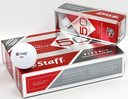 -. Binding : Sports -. Brand : Wilson -. Feature : An aggressive core is offset by a responsive cover / Explosive distance is coupled with soft feel / Low driver spin is offset by high greenside spin / Long carry, Quick stop / 50 compression -. Label : Wilson -. Manufacturer : Wilson -. Model : WGWP111 -. NumberOfItems : 1 -. ProductGroup : Sports -. ProductTypeName : SPORTING_GOODS -. Publisher : Wilson -. ReleaseDate : 2011-11-15 -. Studio : Wilson -. Title : Wilson Staff Fifty Elite Golf Balls, Pack of 12