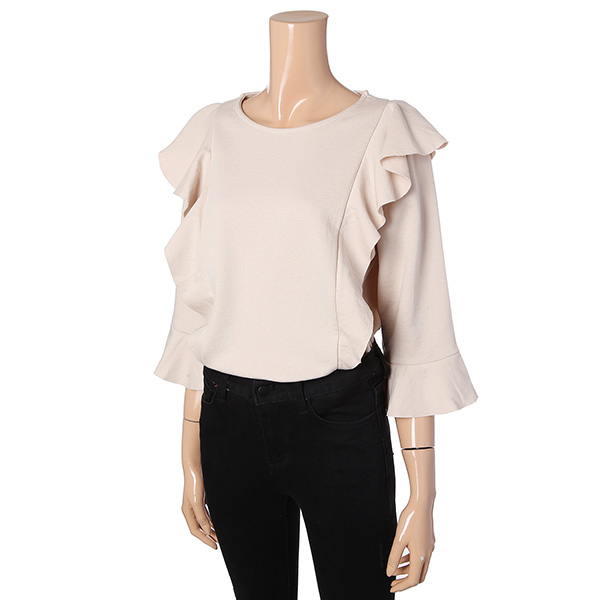 심플하게 프릴달려있는기본티셔츠 디자인 입니다 .
