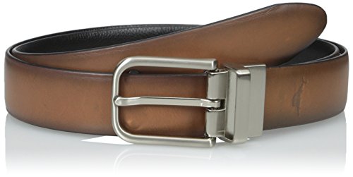 Tommy Bahama Men's Reversible Burnished Leather To Black Leather Belt, Tan/Black, 36