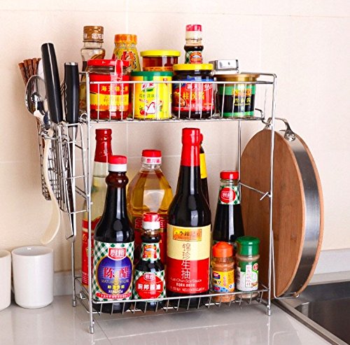 Homeself Multipurpose Stainless Steel Kitchen Organizer Holder Kitchen Rack with Shelves,Bottle Racks,Tool holder,spice Rack Spoon Ladle Hanger,knife Block silverware Caddy,Oil bottle Cruet Holder