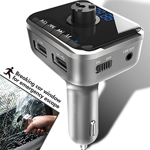 -Design with One-Key Window Breaker(More than A FM transmitter)the switch button there can one key broken the car window at once when you face any emerygcy.its a pretty good Emergency Escape Tool for you,Not only a FM transmitter