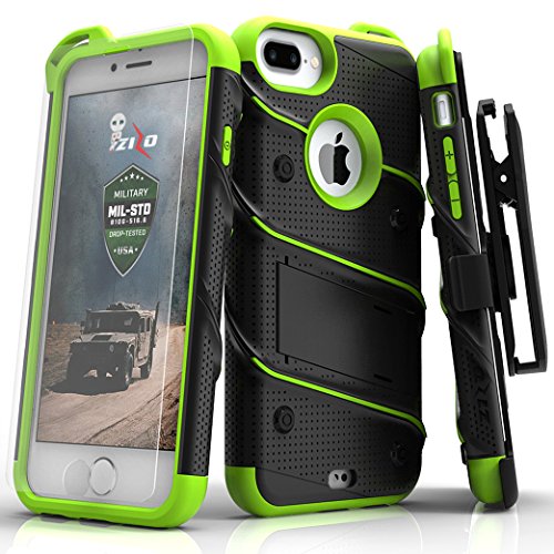 Protective, attractive, and exclusive. The perfect 3 words to describe the Zizo [Bolt Series]. When it comes to finding a reliable iPhone 7 Plus case, the Zizo Bolt Cover is definitely your first choice. This product features a dual-layer case that is engineered to disperse impact force when dropped. A soft [Shock Absorbing] Tetra Polyurethane with an [Impact Resistant] Polycarbonate Shell is the secret behind Zizo Bolt Cover's protection. This bundle also includes a heavy duty 360 degree rotatable holster belt clip and a built-in kickstand to provide additional versatility and functionality while using your device. Aesthetically crafted with over 10 color variations to choose from to convey the perfect platform to express your style. The Zizo [Bolt Series] meets 12 Feet Military Grade Drop Test 810.1-G Certification. We know how important your phone's protection is to you, so we also included a Zizo [Lightning Shield] iPhone 7 Plus screen protector FREE with every purchase. We also made this iPhone 7 Plus case reverse compatible with iPhone 6 Plus and iPhone 6s Plus to give you endless versatility. Our goal is simple: to provide the best value in products available. Zizo is a second-generation family company based out of Southern California. We're a New school company with Old school traditions. Become a part of the ZizoFamily today!Feature