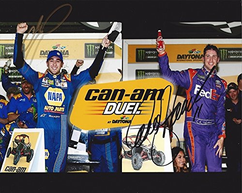 2X AUTOGRAPHED Chase Elliott & Denny Hamlin 2017 CAN-AM DUEL AT DAYTONA (Race Winners) Dual Signed Picture NASCAR 8X10 Inch Glossy Photo with COA