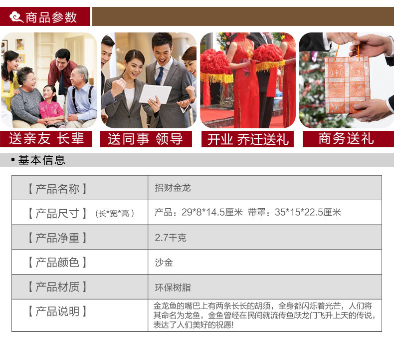 招财金龙鱼摆件开业乔迁新居商务礼品办公室客厅电视柜工艺装饰品