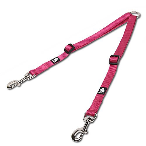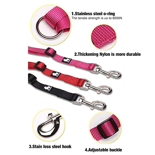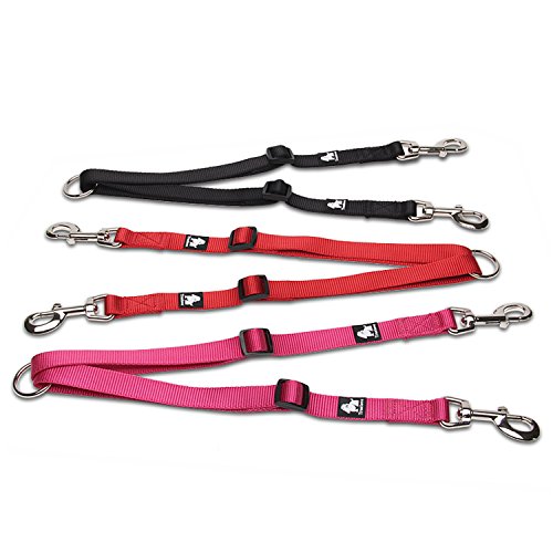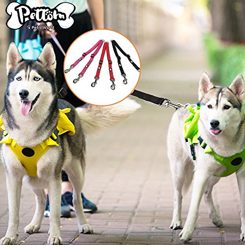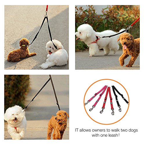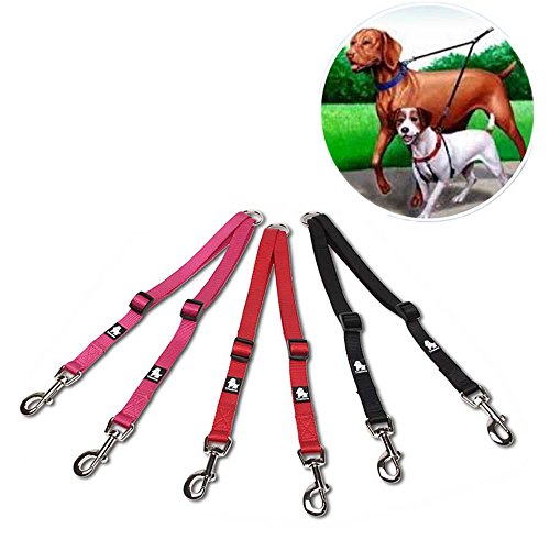 Products Features 1.??Walk to two dogs with one double dog leash. Double dog leash for big dogs and small dogs, or both! No point in buying a dog retractable leash if you have two dogs, just buy one double dog leash. 2.??Stainless steel O-ring Tangle resistant design with a strong Stainless steel O-ring and Zinc-alloy hooks makes it easy to keep dogs on leash.The tensile strength of stainless steel O-ring is up to 8000 N. SIZE INFORMATION
