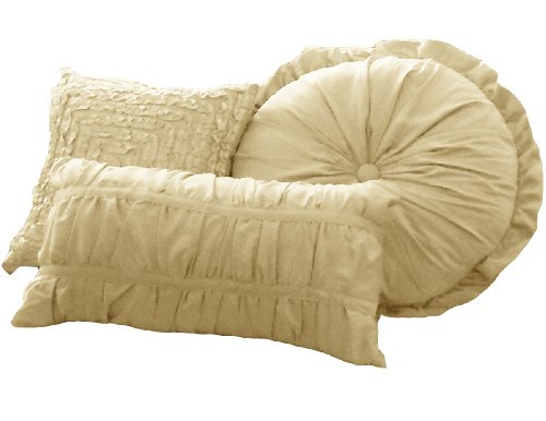 Pillow set 4-piece: round toss 16-inch by 16-inch; Square toss 2 14-inch by 14-inch; boudoir 12-inch by 20-inch