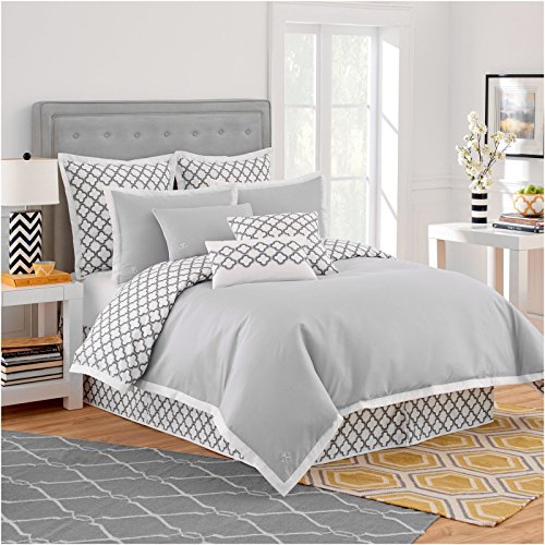 Jill Rosenwald Copley Collection Quatrefoil Reversible Duvet Cover Twin Grey and White