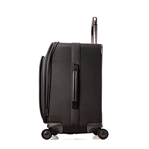 -. Feature : Durable ballistic nylon and handsome full grain leather. Wider, contoured handle system that provides 12 positions of height adjustment for unmatched ease of movement / Sleek, leather carry handles. Re-engineered wheel system that incorporates 12 individual, hardened steel cartridge bearings / Multiple pockets designed for organized and tailored packing / Adjustable ties tapes to keep belongings neatly secured / 22.0x22.5x13