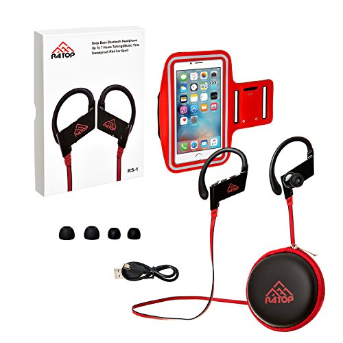 -. Title : Bluetooth Wireless Headphones - for Running, Workout, Sweat-Proof with Deep Bass, Mic and Secure Ear-Hook - FREE BONUS - Sports Armband and Zippered Case by RATOP