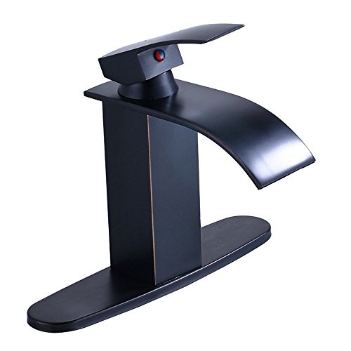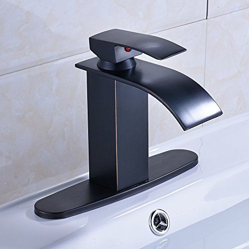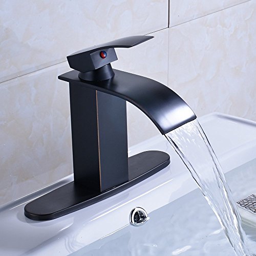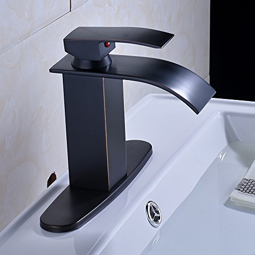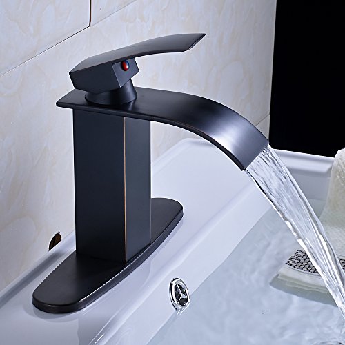 -. Title : Zovajonia Single Lever Basin Vessel Sink Mixer Taps Deck Mount Waterfall Bathroom Faucet with Deck Plate Oil Rubbed Bronze